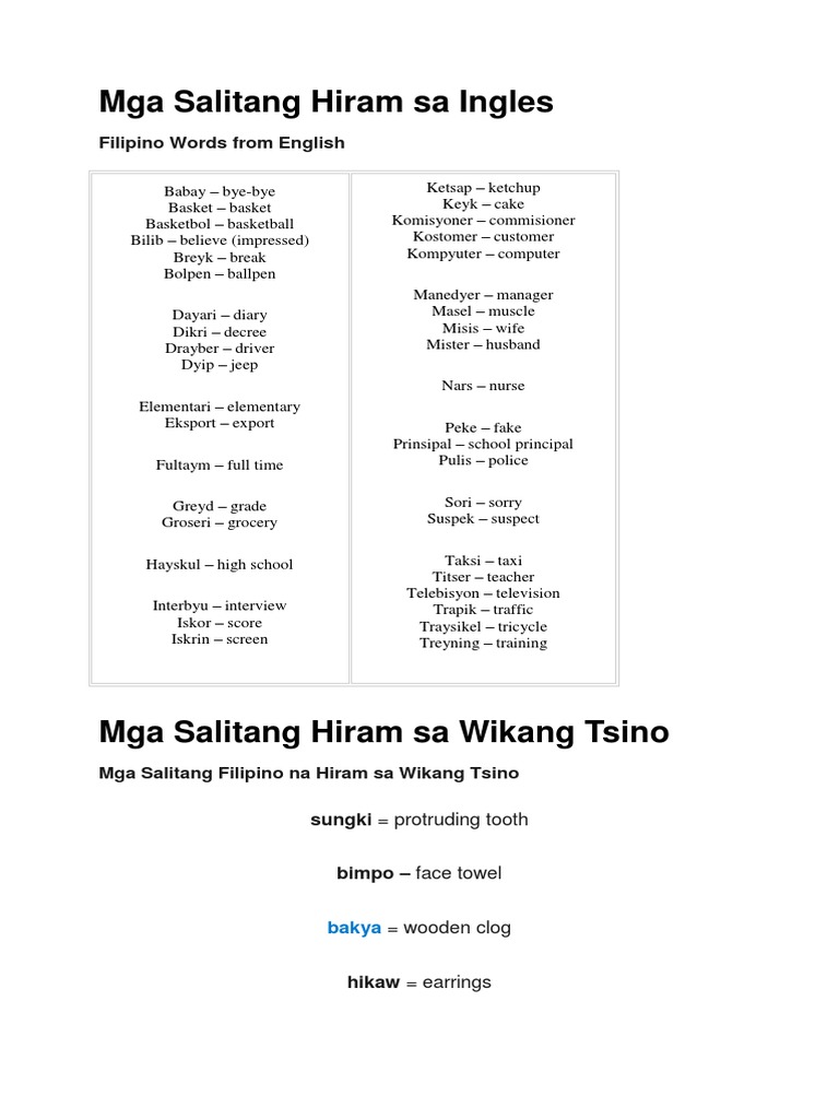 Mga Salitang Hiram Sa Ingles Pdf