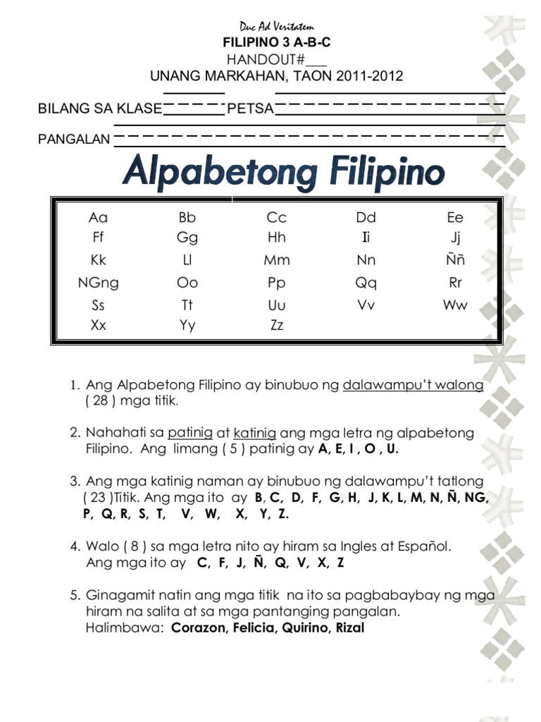 Makabagong Alpabetong Filipino Worksheet Otosection