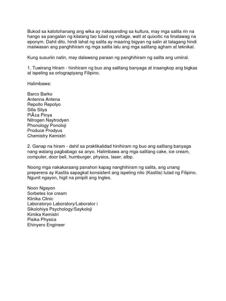 Mga Salitang Filipino na Hiram sa Wikang Kastila. Araling Panlipunan 28102019 1929. Ngunit itoy nagdudulot ng pagsira sa konsistensi ng palabaybayan ng wika.